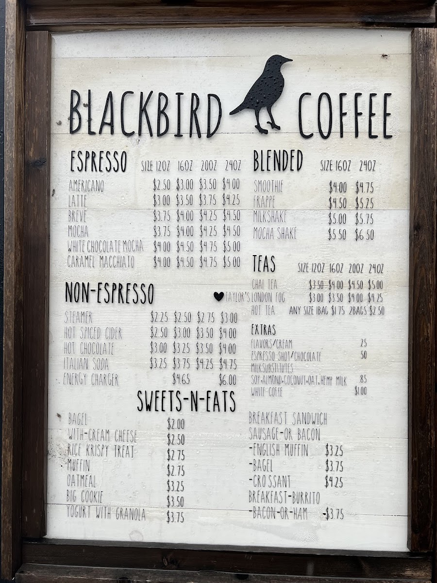 Blackbird Coffee Menu